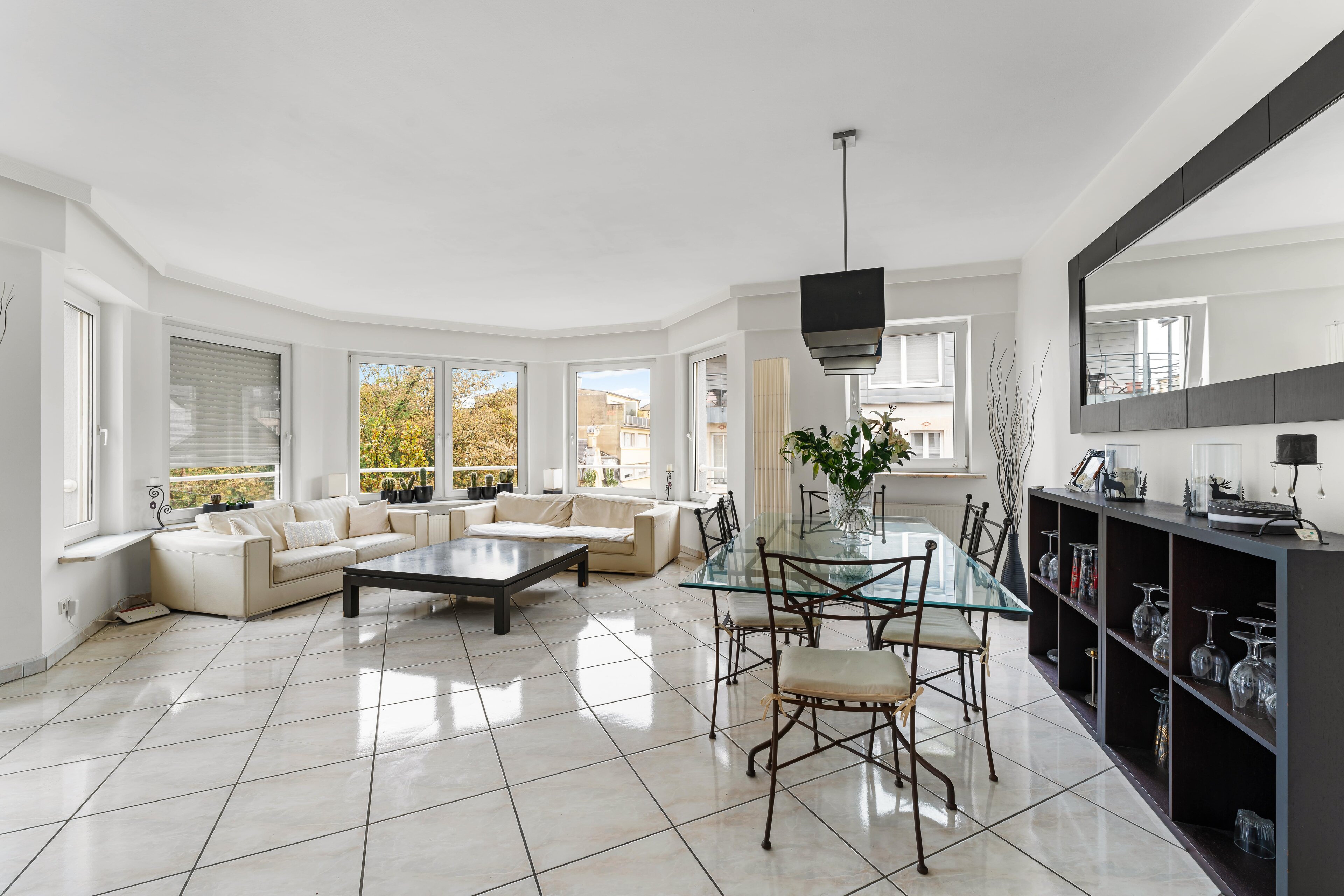 This charming 3-room flat is located on the 4th floor of an apartment block, which was built in 1994 and consists of eight flats. The flat offers a harmonious living ambience that combines contemporary comfort with timeless elegance. With a generous living space of approx. 105 sqm and a prime location in the upmarket neighbourhood of Limpertsberg, the flat is an excellent choice for anyone looking for a stylish and elegant home.