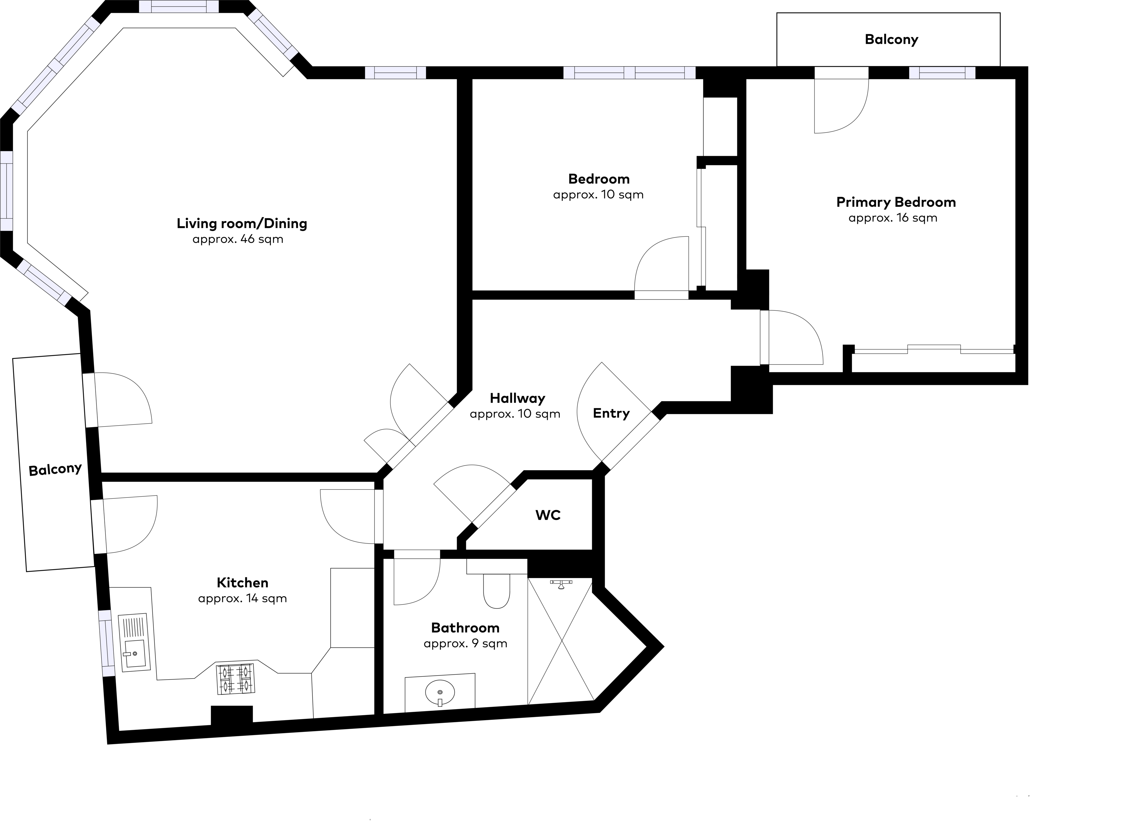 The flat offers an inviting and comfortable home for singles, couples or small families. The centrepiece of this flat is undoubtedly the spacious living area, which with its approx. 46 sqm offers enough space for cosy evenings on the couch. The large double-glazed windows provide plenty of natural light in all rooms. The flat has two bedrooms, each equipped with a built-in wardrobe. The master bedroom also offers direct access to one of the two balconies with a size of 2m². The second balcony is adjacent to the kitchen and living room, making it perfect for a morning coffee. The modern bathroom extends over approx. 10 sqm. Additional amenities include a lift for easy access to the flat and a closed parking space on the ground floor for one car.