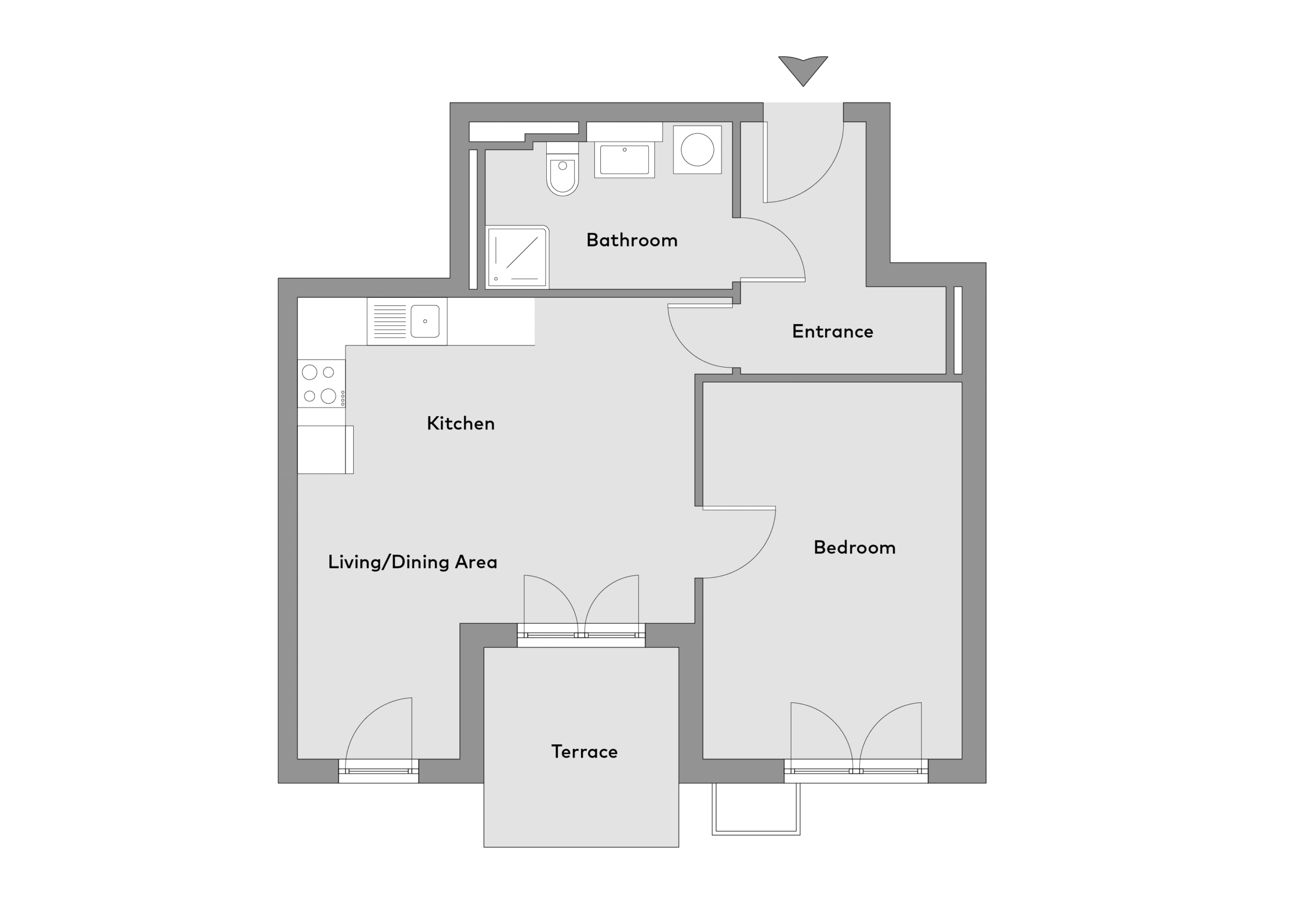 With approximately 54 sqm of living space, the apartment offers a bright living and dining area with an open-plan fitted kitchen, a quiet bedroom, a modern shower room with was[1]hing machine connection, and an entrance area with storage space.