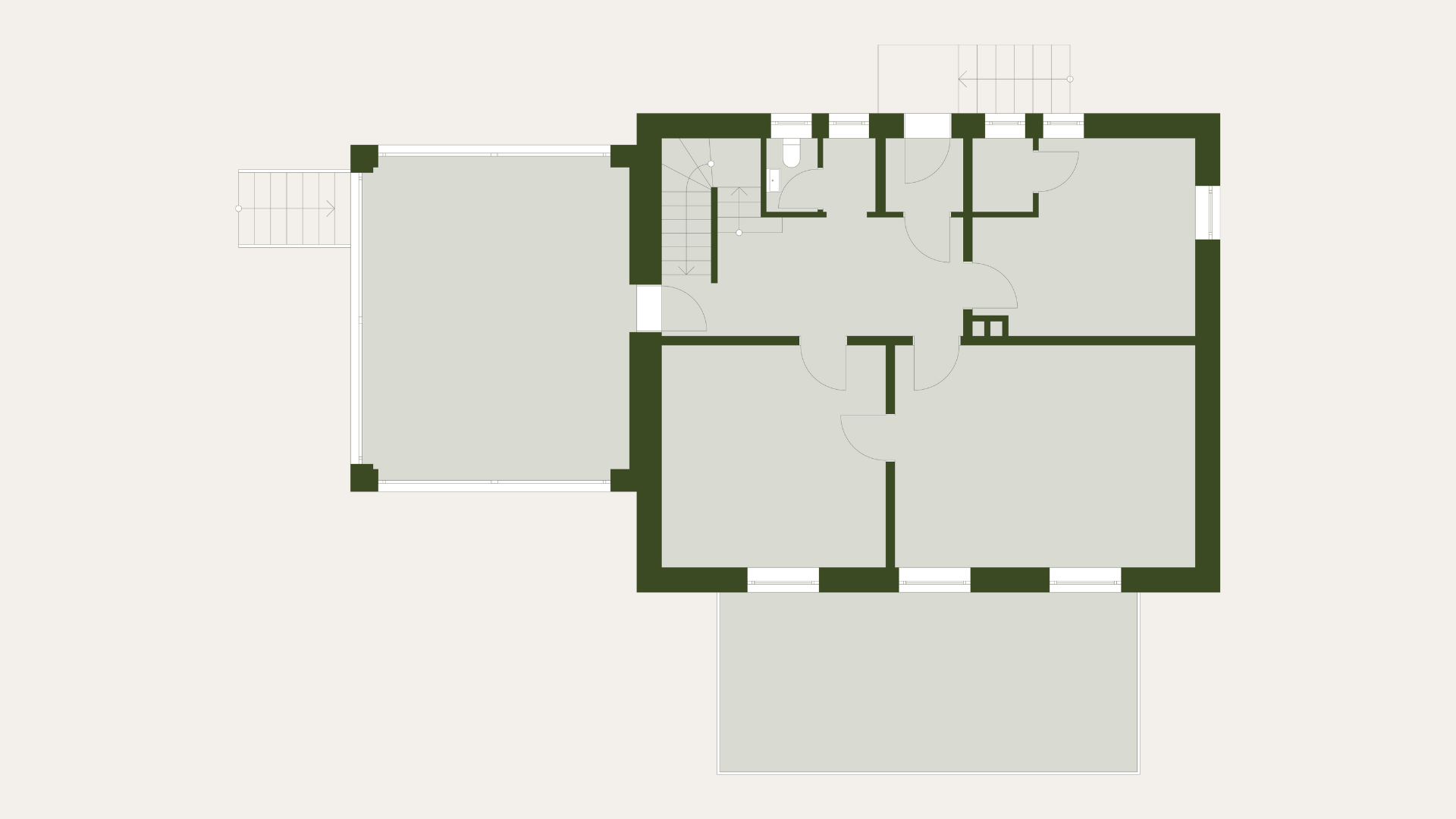 This coach house combines historic character with modern living comfort and is being extensively renovated. A key feature is the approximately 46 sqm glass extension on the ground floor, which extends the living and dining area and provides plenty of natural light. From here there is a direct transition to the garden, which faces southwest and will have an adjoining terrace in the future.