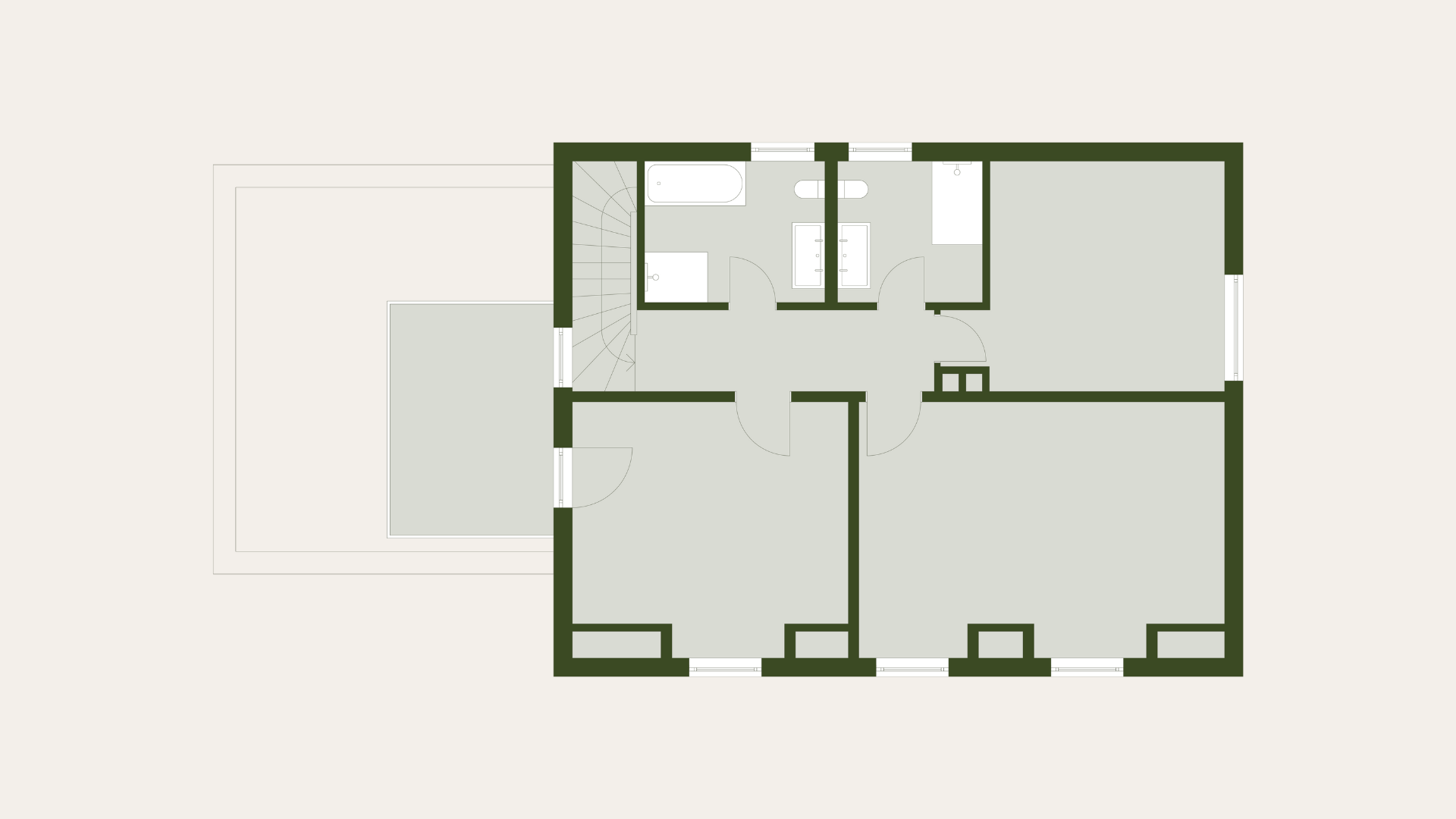 In the basement, hobby rooms are being created with living room windows that provide good lighting. In addition, there is the possibility to set up a fitness area and a sauna.