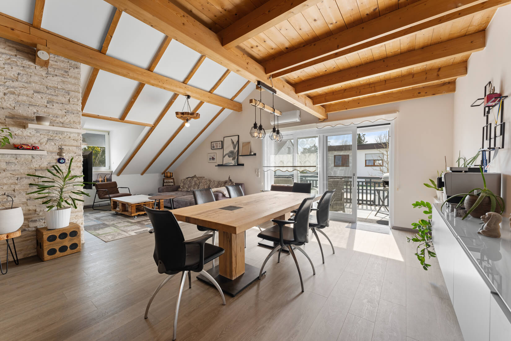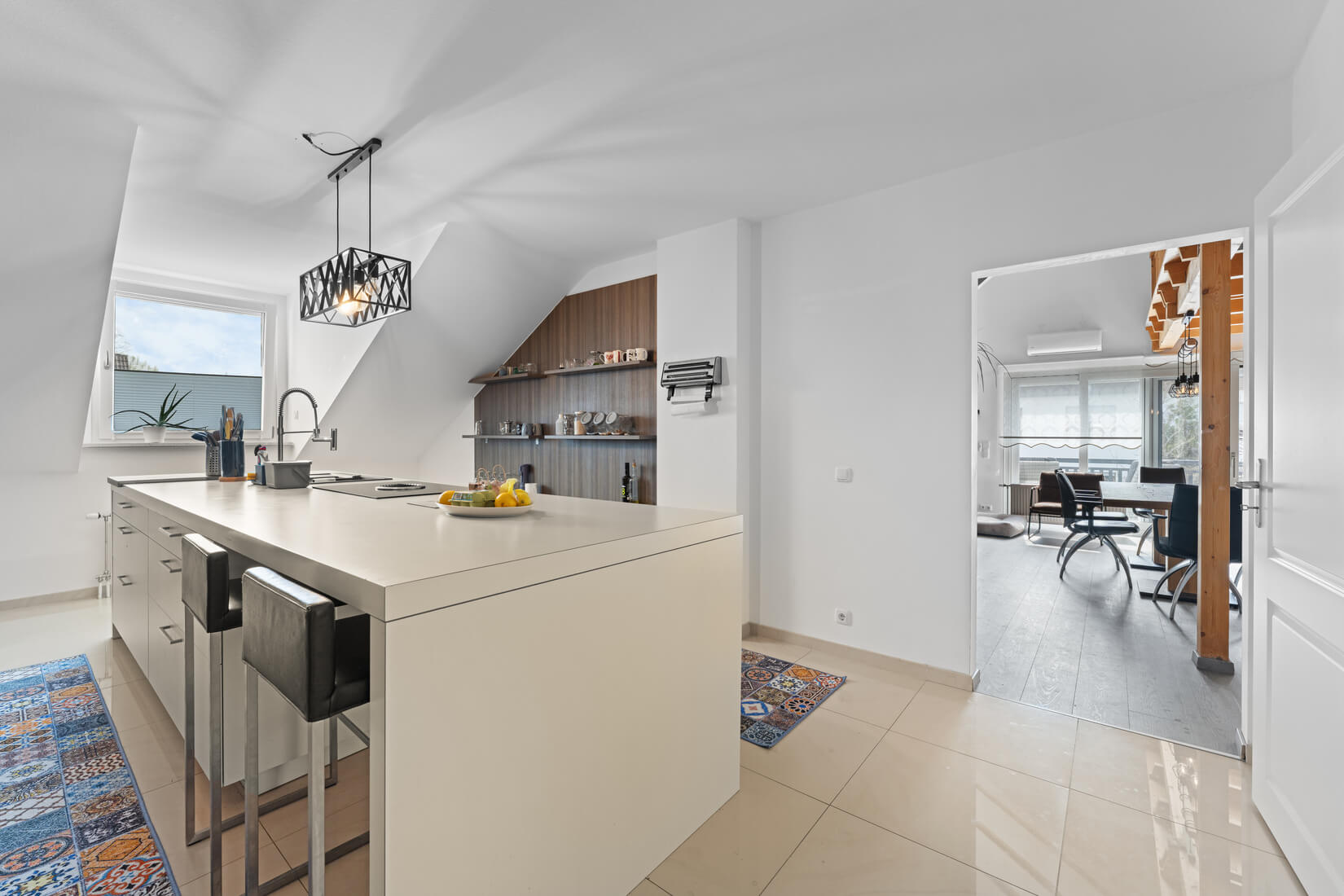 This bright and spacious top-floor apartment has its own entrance and is ideal for families or couples who want space, comfort and an open- plan living style.