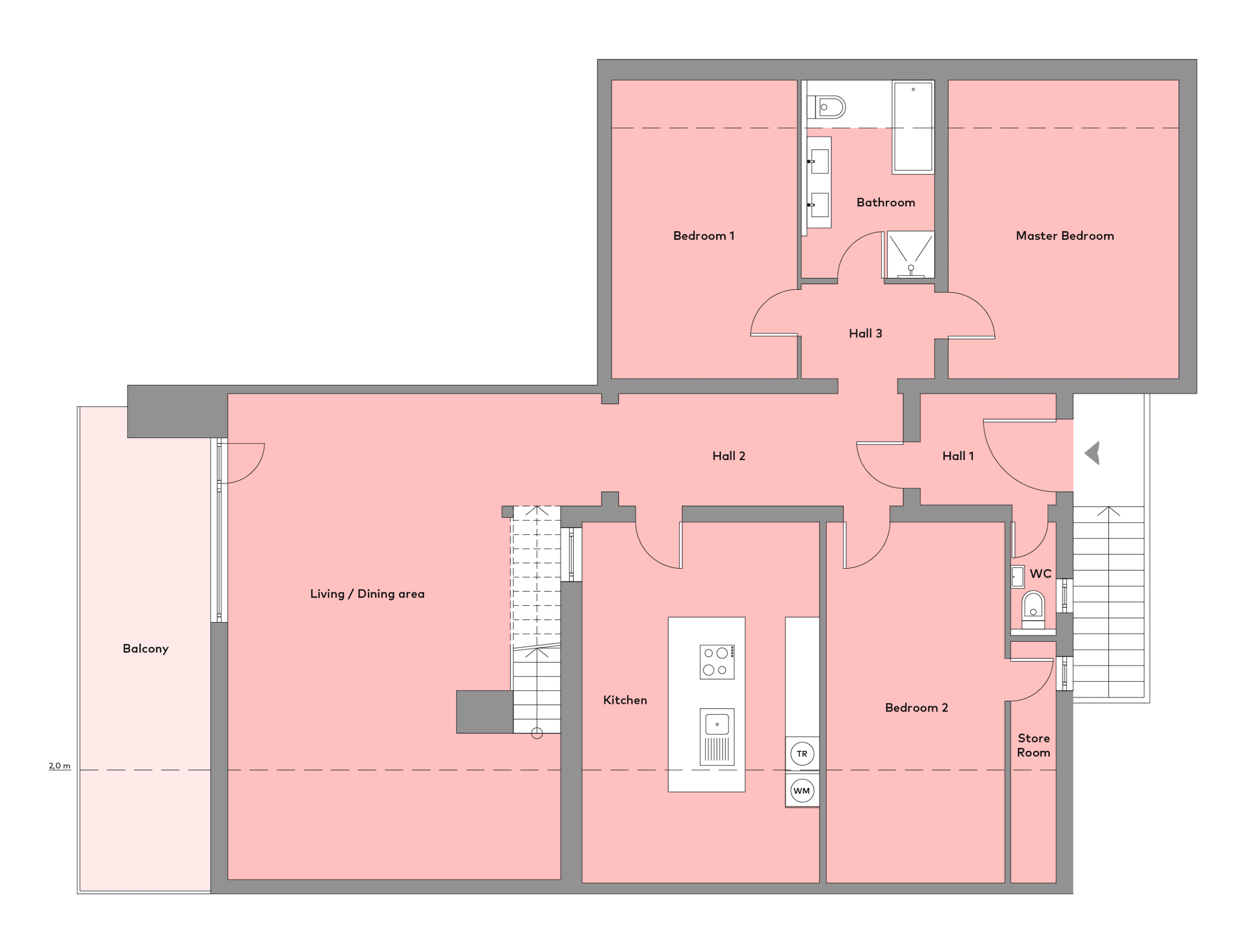 The apartment is characterized by its friendly character, generous room layout and an attrac- tive gallery that extends the living space and offers additional freedom.