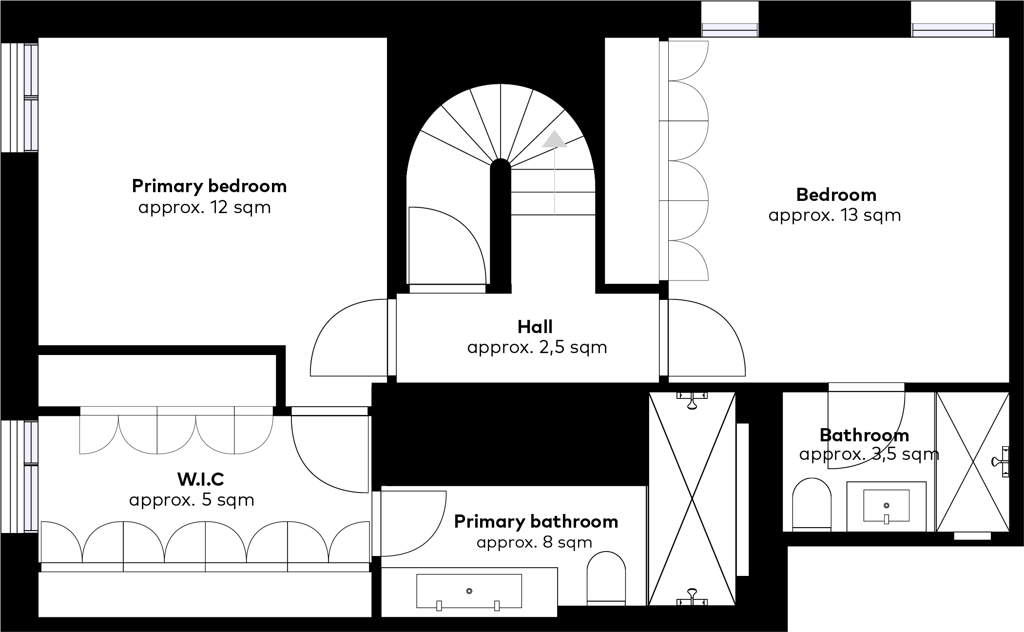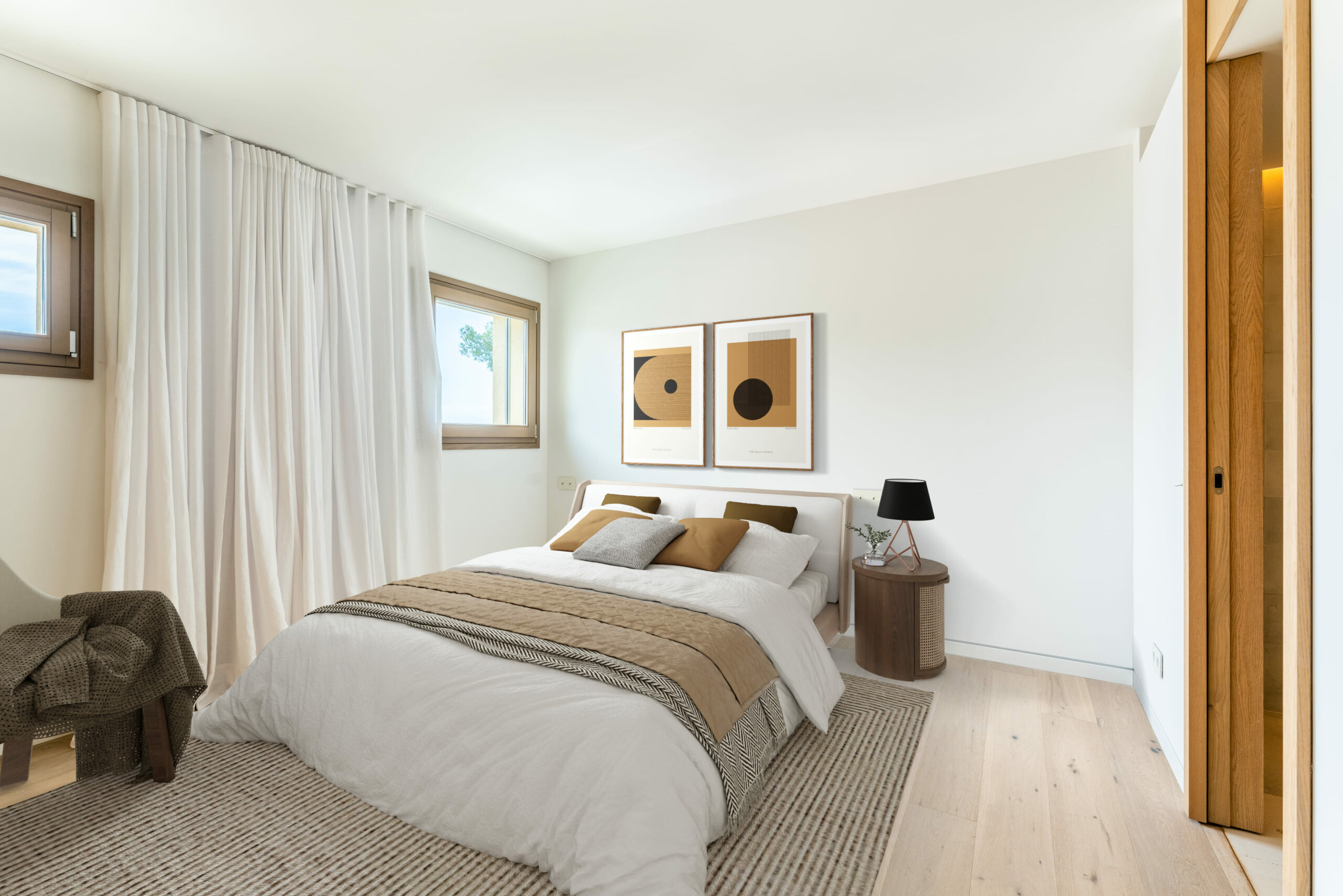 On the lower floor of the penthouse are the two bedrooms, both with en suite bathrooms. The master suite is additionally equipped with a dressing room.