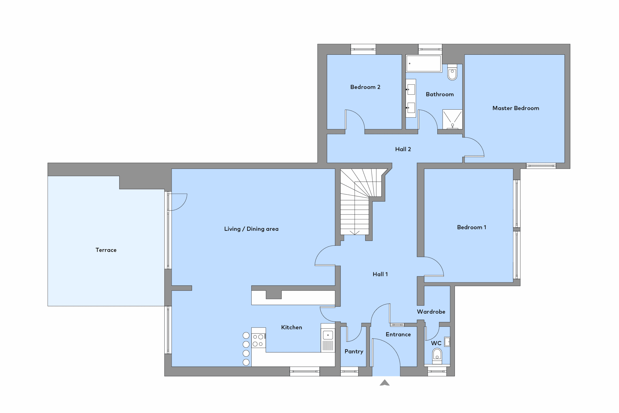 This spacious first floor apartment impresses with its well thought-out room layout and friendly living atmosphere. Whether you are a family or a couple, there is enough space here for everyone to feel at home. The open-plan living/dining area with direct access to the sunny terrace creates the ideal conditions for socializing and spending relaxing hours outdoors. Subtle arched elements lend the apartment additional charm and a pleasant, cozy touch.