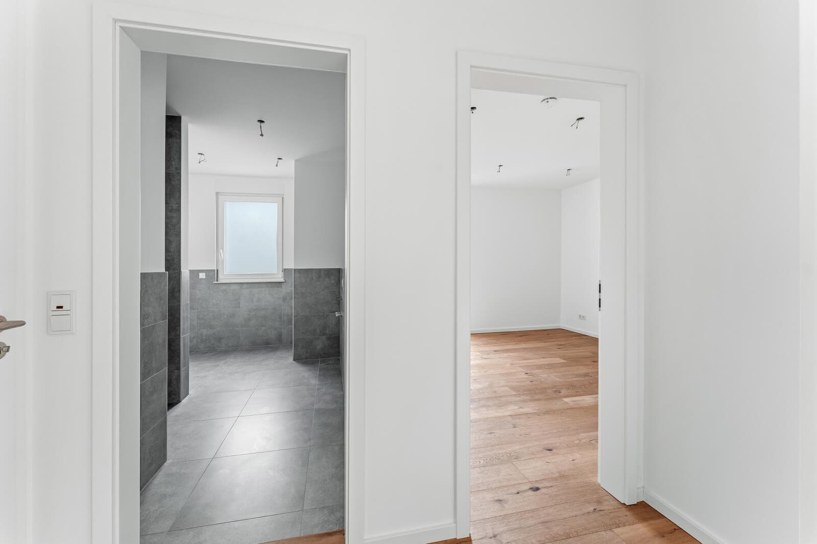 The installed doorbell intercom and peephole provide peace of mind. The technical features are equally impressive: anthracite-coloured plastic windows with triple glazing ensure excellent sound and thermal insulation, whilst electric roller shutters add to the comfort.
