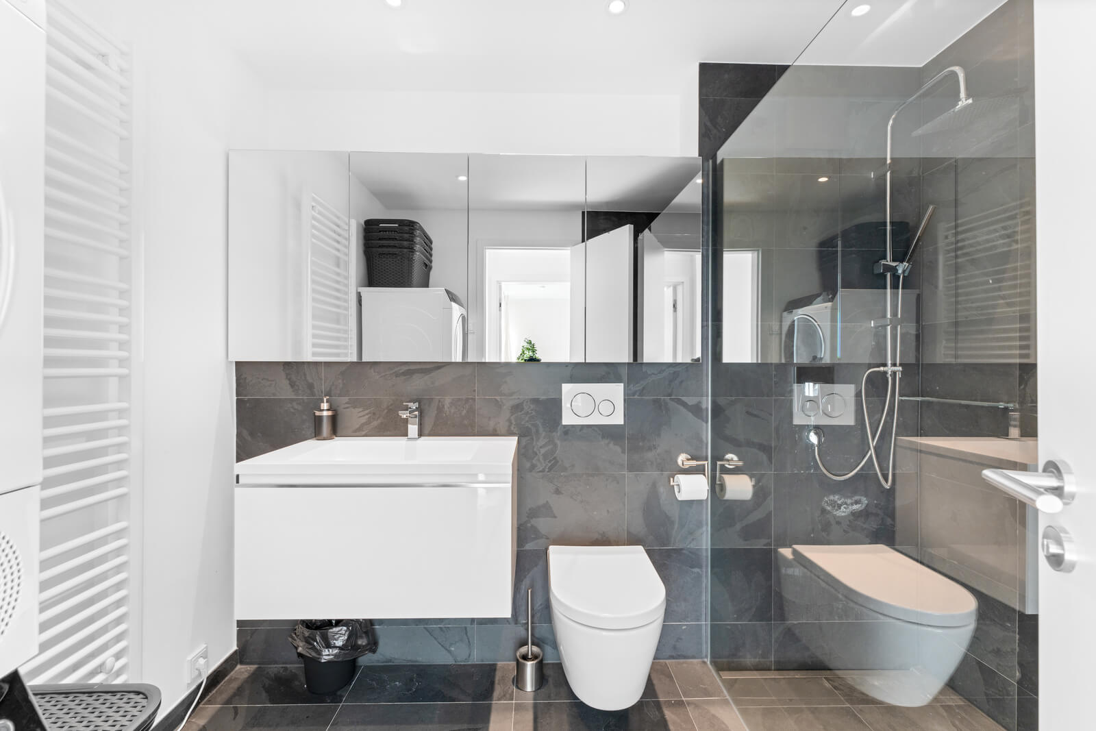 The floor-to-ceiling window fronts create a bright and inviting atmosphere. Here, first-class design is combined with an outstanding location that offers both tranquillity and the advantages of urban living.