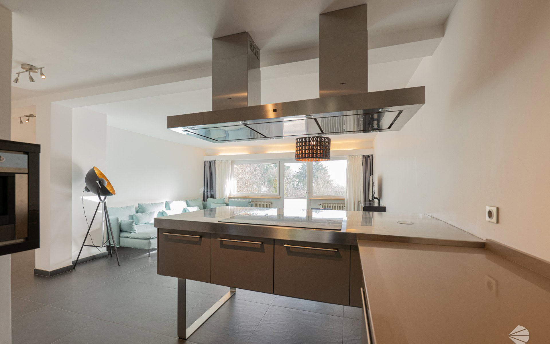 Senningerberg, LuxembourgThe exquisitely beautiful, completely renovated apartment is situated on the first floor of a multi-unit residence in Senningerberg. It consists of one apartment with more than 60 square metres and a chic, separate studio with around 20 square metres. The apartment kitchen opens up into the bright living room. The separate studio has a combined living/dining area with a pull-out couch and a delightful bathroom with shower and WC.