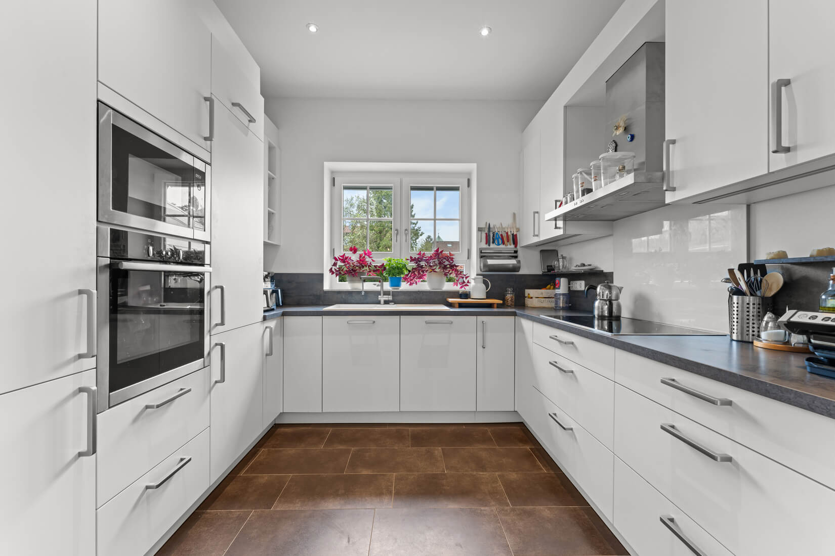 This spacious maisonette apartment extends over three levels (basement, ground floor, first floor) and offers a pleasant balance between an open living atmosphere and personal retreat. Families or couples in particular will appreciate the well thought-out floor plan and the friendly ambience. Large windows provide plenty of natural daylight and create bright, homely rooms. A highlight is the covered terrace, which leads into the well-tended garden and is ideal for spending time together outdoors.