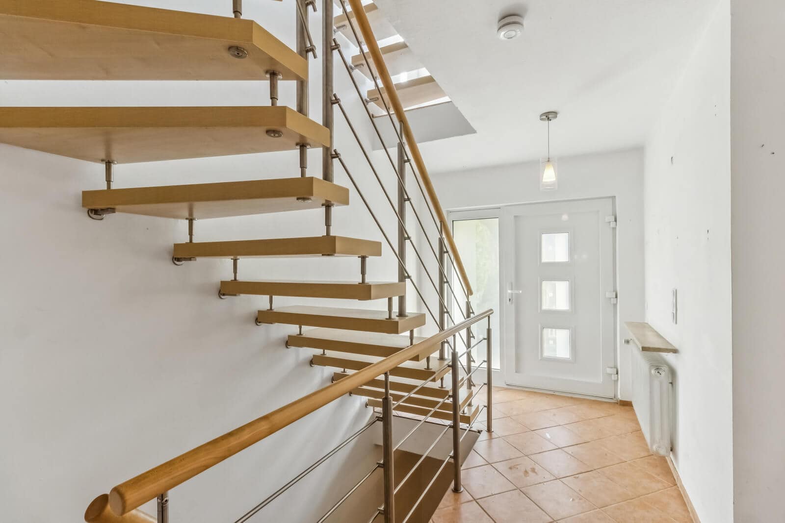 The house was built using solid construction methods and has been extensively modernised over the years. In addition to the renovations already mentioned, such as the roof extension, heating, floors, kitchen, bathrooms, doors and stairs, the property impresses with its well-designed and well-maintained fittings. Double-glazed plastic windows are installed throughout most of the house. All windows have roller shutters with belt pulls, which are advantageous for darkening the rooms as well as for heat and burglary protection. All rooms have windows that let in daylight – there are no windowless living or utility rooms.
