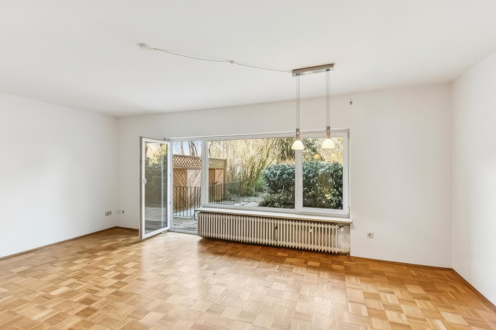 The mostly covered west terrace extends the living space into the garden and offers both sunny spots and sheltered areas. The garden is mature, very private and ends at a garden gate that leads directly to a footpath in South Park – ideal for walks, jogging or ‘just popping to the park’ with the kids. To the left of the terrace, an external access leads to the basement; the adjoining room is ideal as a hobby, fitness or music room and is deliberately not included in the living space.
