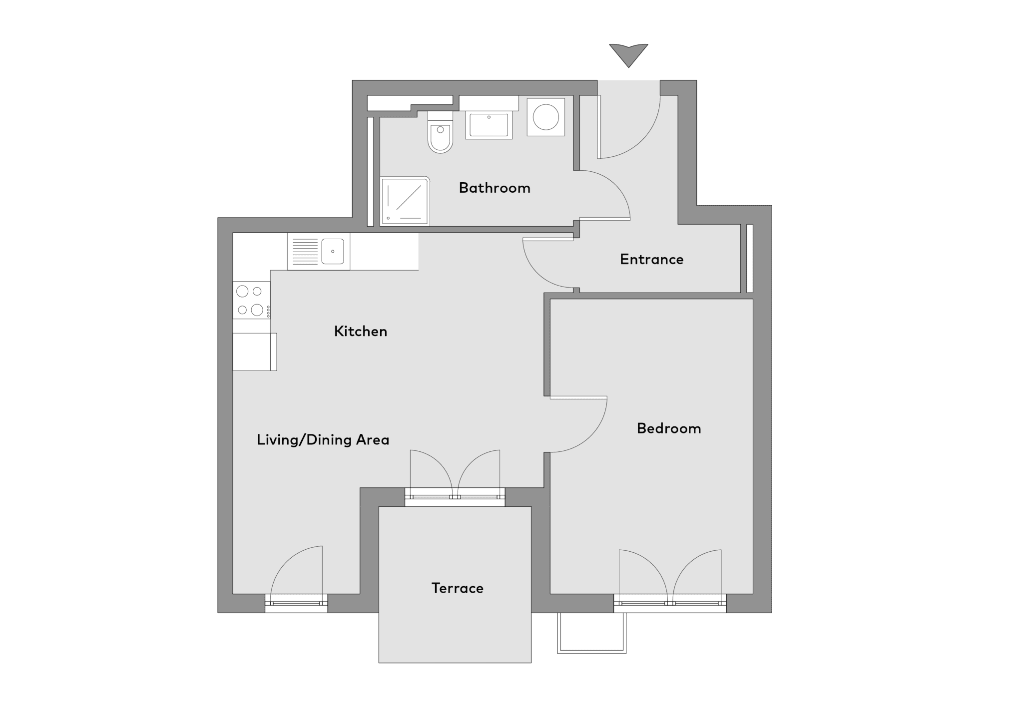 With approximately 54 sqm of living space, the apartment offers a bright living and dining area with an open-plan fitted kitchen, a quiet bedroom, a modern shower room with was[1]hing machine connection, and an entrance area with storage space.