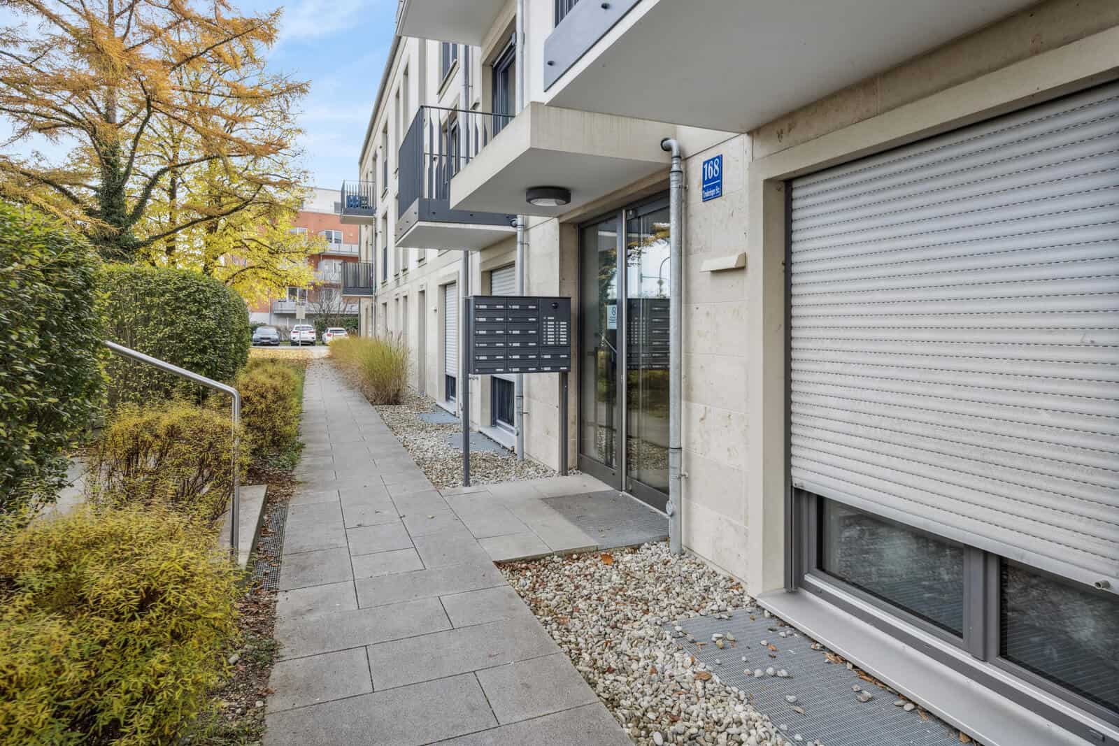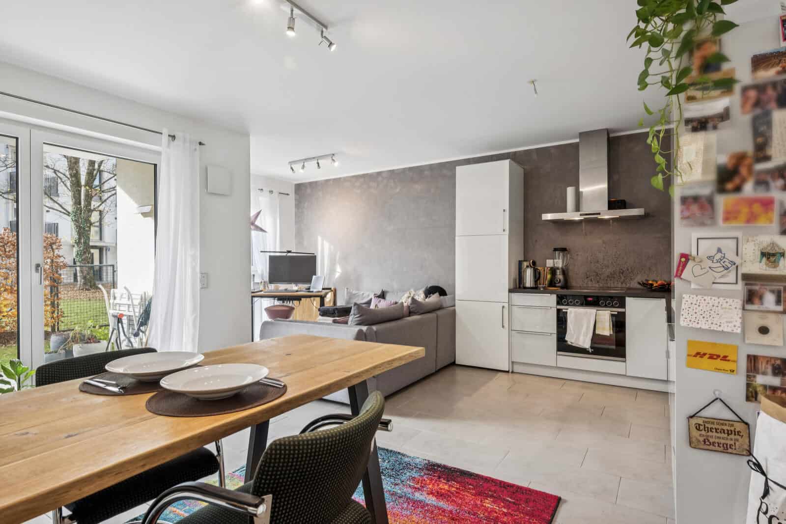 The ground floor apartment is modern and well maintained, offering additional living comfort thanks to its barrier-free design. Floor-toceiling windows flood the living area with light and provide direct access to the terrace with its own small garden and private boundary.